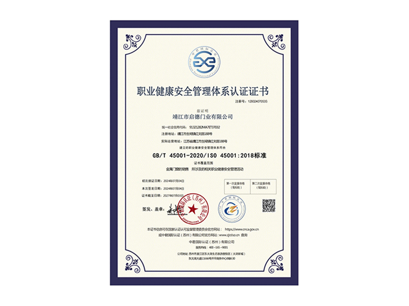 職業(yè)健康安全管理體系認證證書